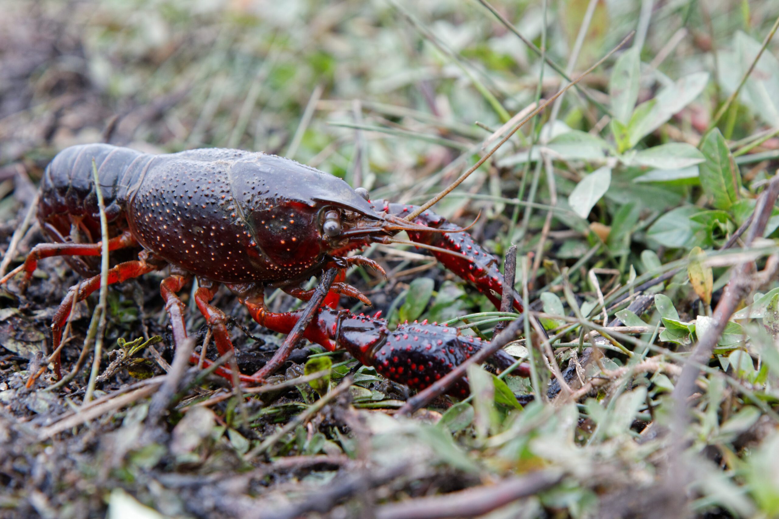 • L ’Écrevisse de LouisianeProcambarus clarkii. La population a explosé depuis son arrivée récente en 1999 et impacte considérablement le milieux.