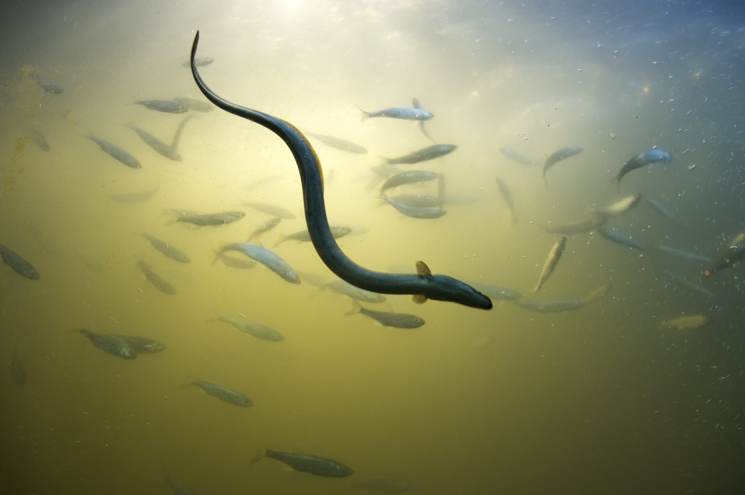 Anguille Anguilla anguilla, probablement abondante à Grand-Lieu bien qu’en danger critique d’extinction au niveau international.