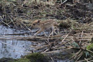 - Le Sanglier – Sus scrofa – espèce rare jusqu’en 2010 sur la Réserve, ses effectifs ont régulièrement augmenté. Par leurs actions de piétinement, labour du sol, prédation et consommation de végétaux, leurs impacts sur les habitats et les espèces sont multiples :