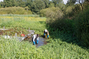Des opération d’arrachage des foyers problématiques des jussies et des autres espèces exotiques envahissantes émergentes sont réalisées chaque année, en collaboration avec le Syndicat du bassin versant du lac de Grand-Lieu, afin d’éviter leur dispersion et le comblement de certains canaux.