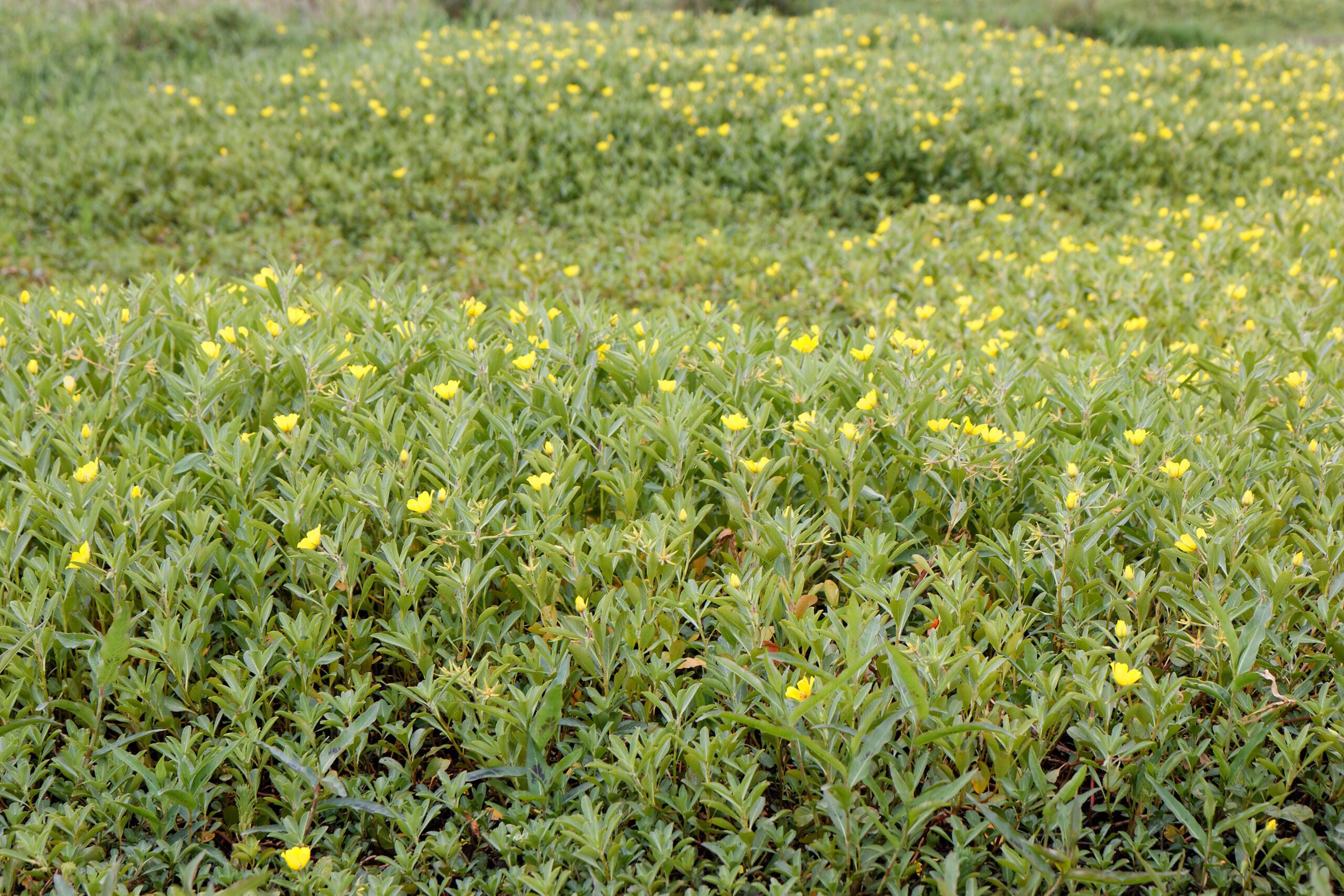 Depuis quelques années plusieurs secteurs de prairies humides sont envahis par le Jussie à grande fleur - Ludwigia grandiflora. Cette plante exotique envahissante favorisée par la chaleur et l’excès de nutriments azotés et phosphatés d’origine anthropique devient alors dominante et provoque une chute considérable de la diversité végétale.