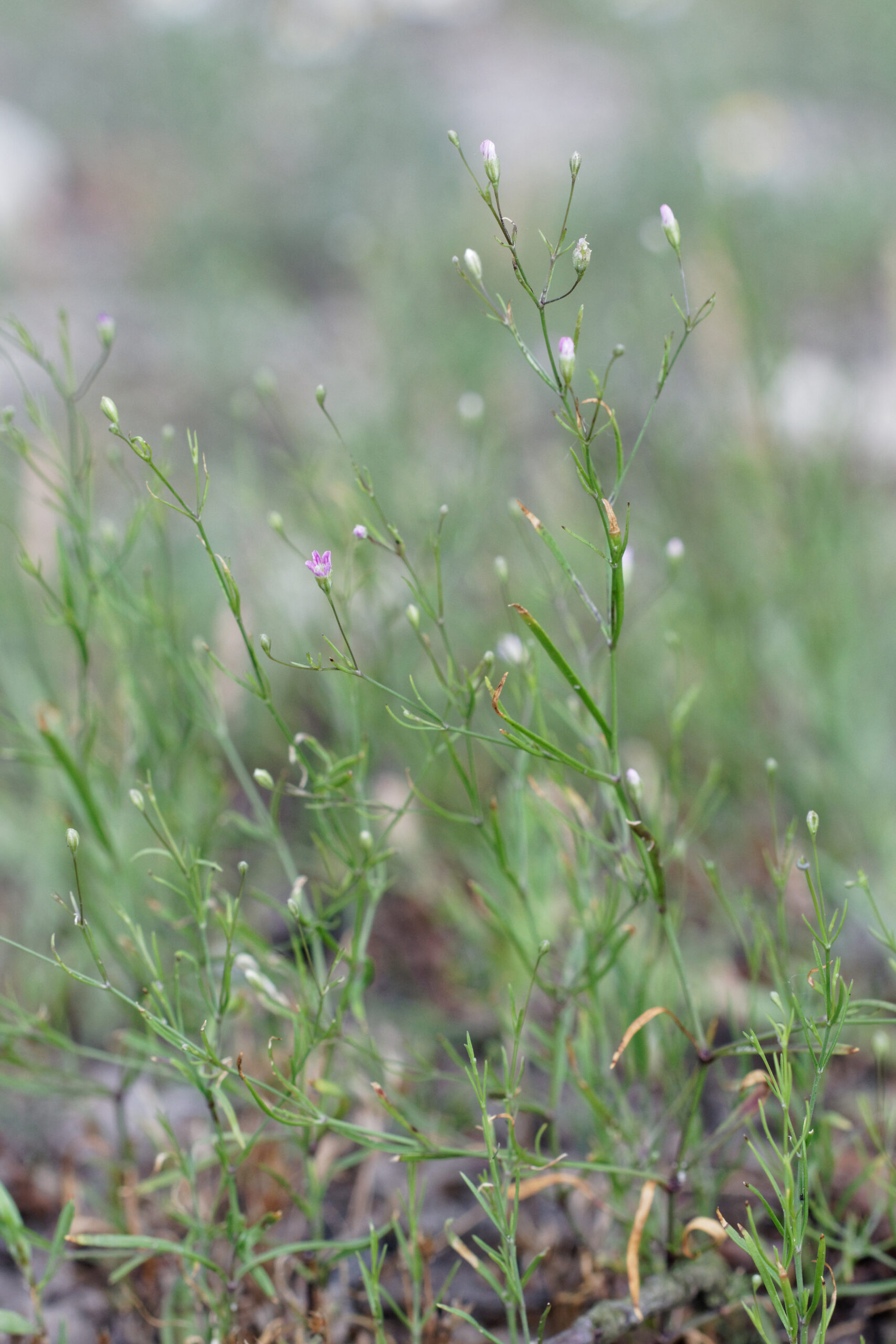 Le Gypsophile des murailles - Gypsophila muralis - est présent sur des petites stations mises à nu par les sangliers et peut persister au sein de prairies plus fermées. Cette espèces patrimoniale rare est caractéristique des pelouses annuelles amphibies sur sols sableux.